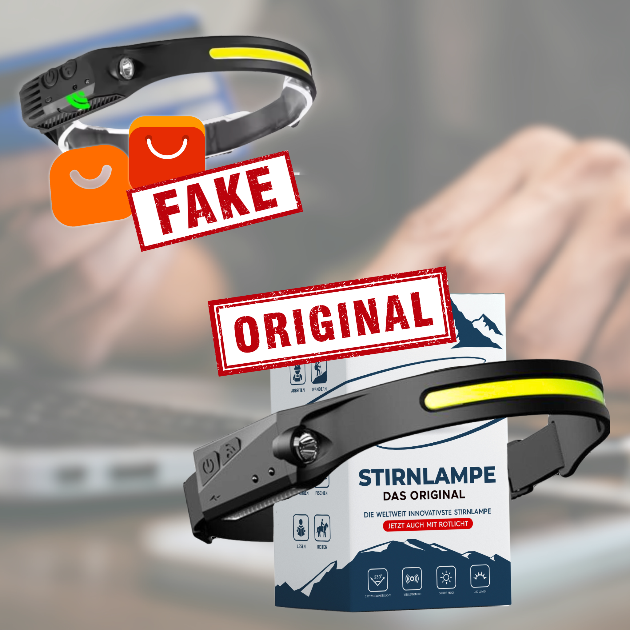 Don’t be fooled – many headlamps look like our NaturVibes, but they’re cheap imitations! The result: low-quality materials, weak brightness, short battery life, and no red-light mode.