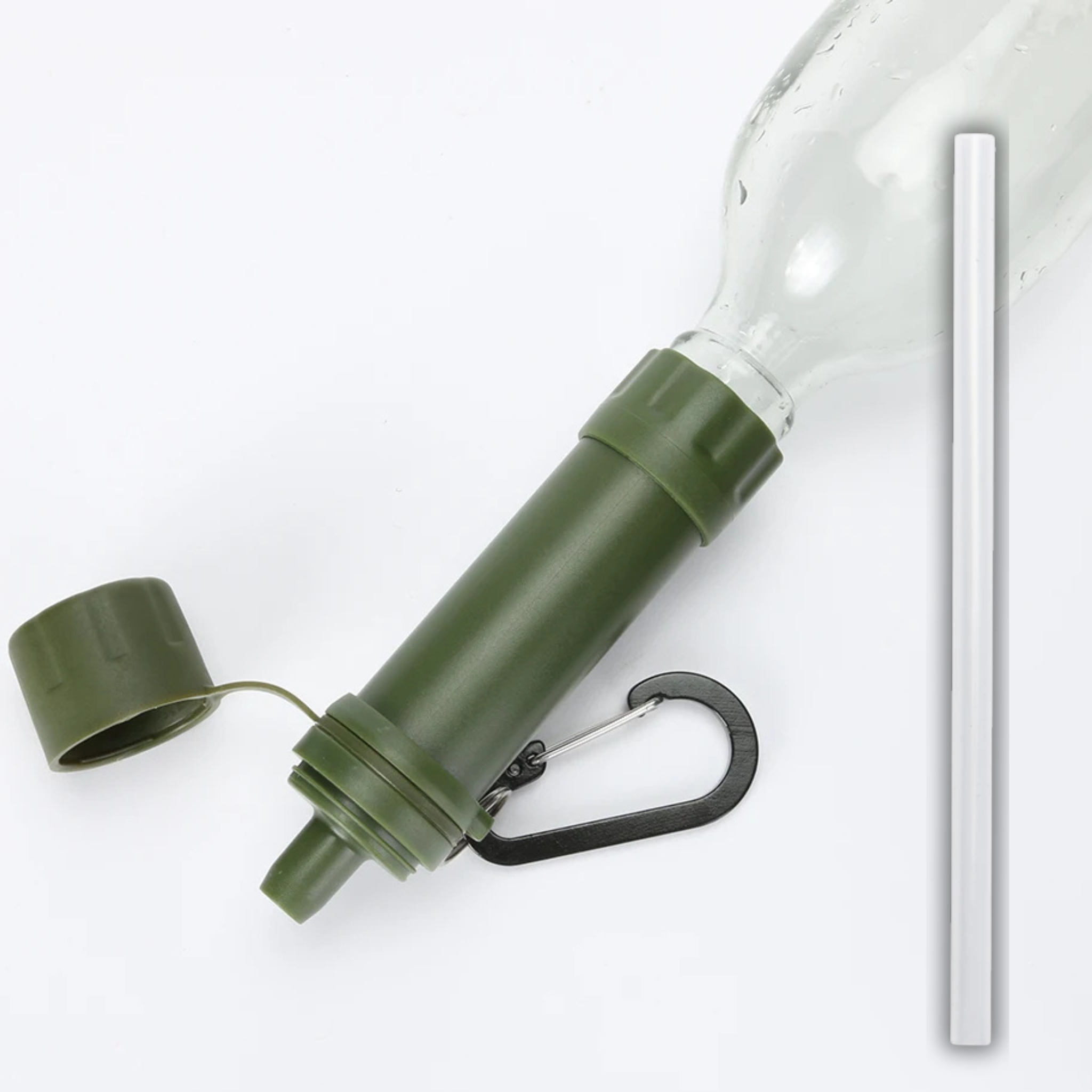 The filter removes up to 99.99% of bacteria, microorganisms, and contaminants from natural water sources. You can drink clean water directly with the integrated straw.