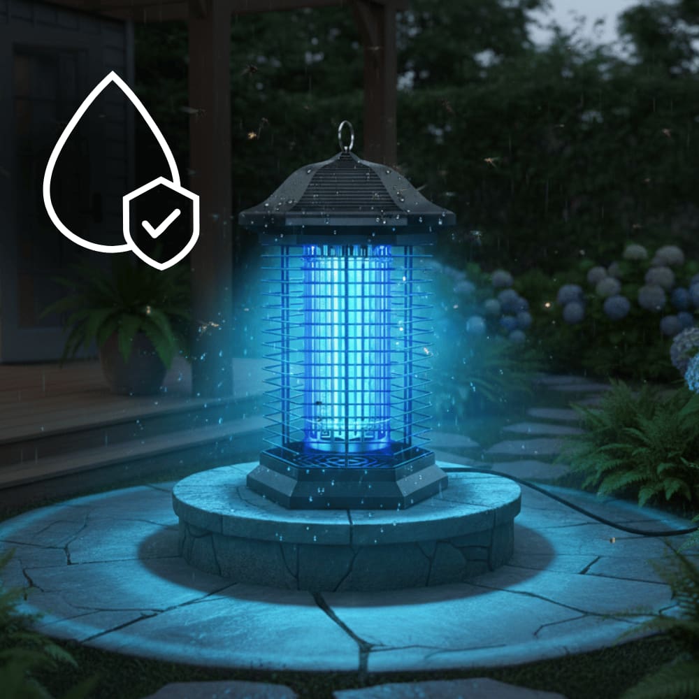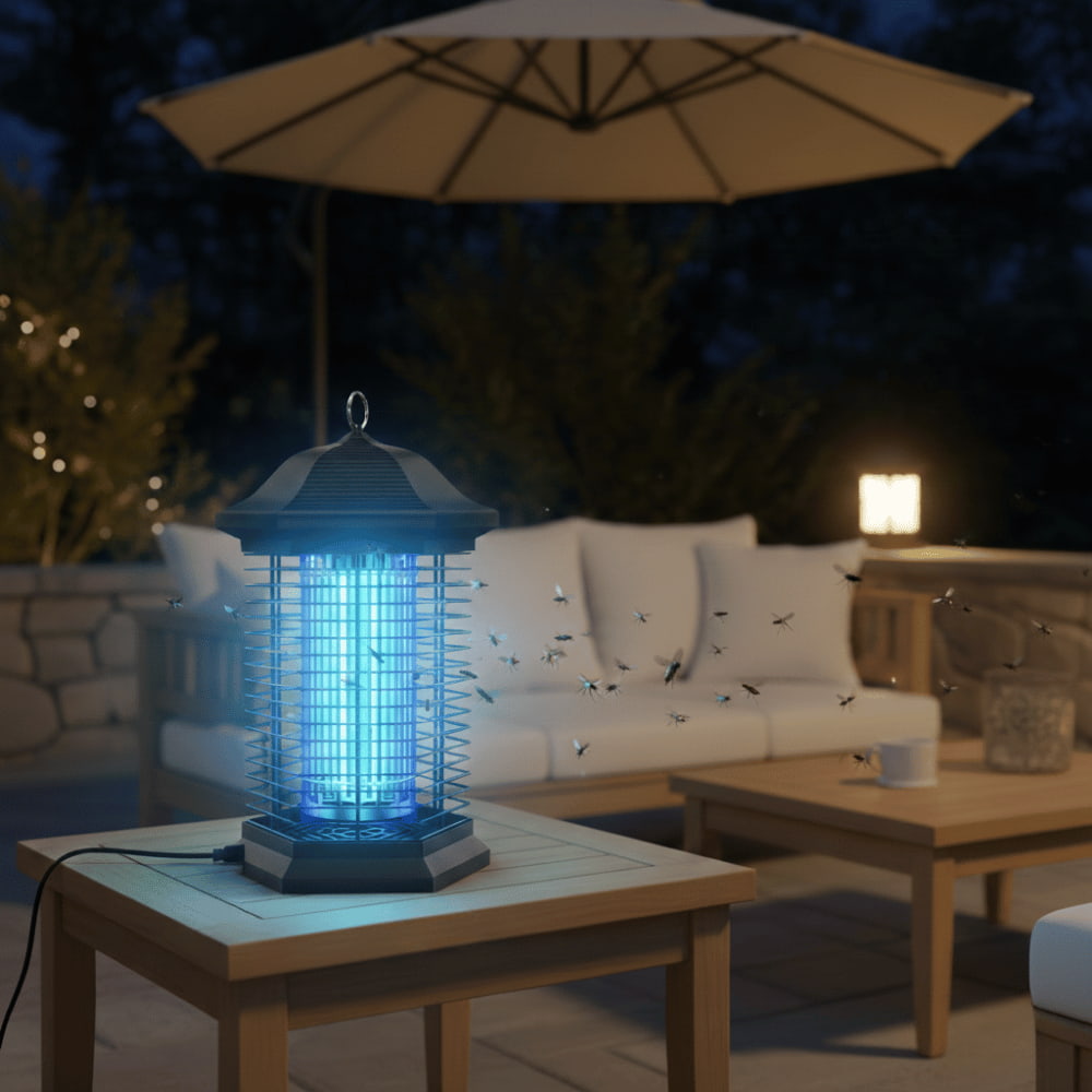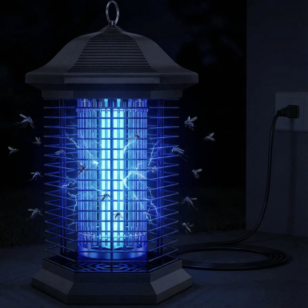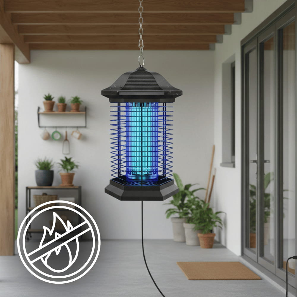 The device uses exclusive UVA light waves to attract insects. A high-voltage grid up to 4,400 volts eliminates them instantly upon contact—without chemicals or sprays.