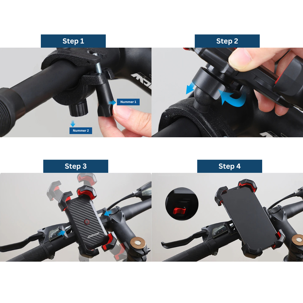 With the automatic locking mechanism, your smartphone is securely attached with just one click. The mount only needs to be installed on the handlebars once.