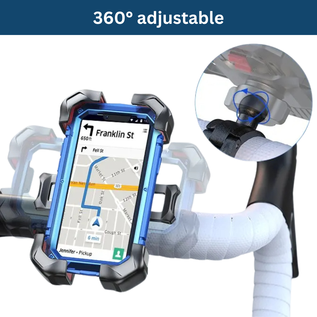 You can rotate your phone to any angle, and thanks to the silicone cushion in the thread, the chosen angle remains stable during your ride.