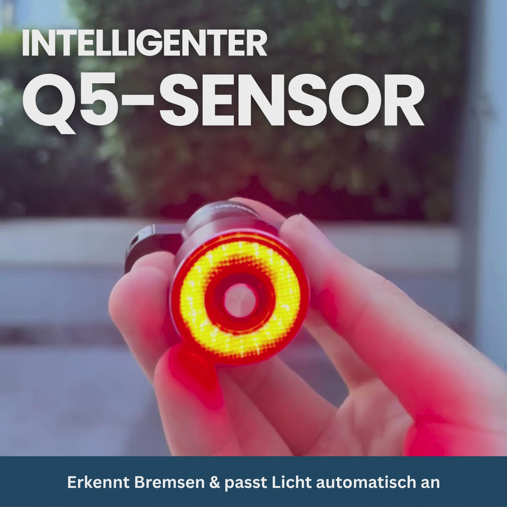 The highly intelligent Q5 sensor immediately detects when you're braking while cycling and activates the brake light of the Smartlight.