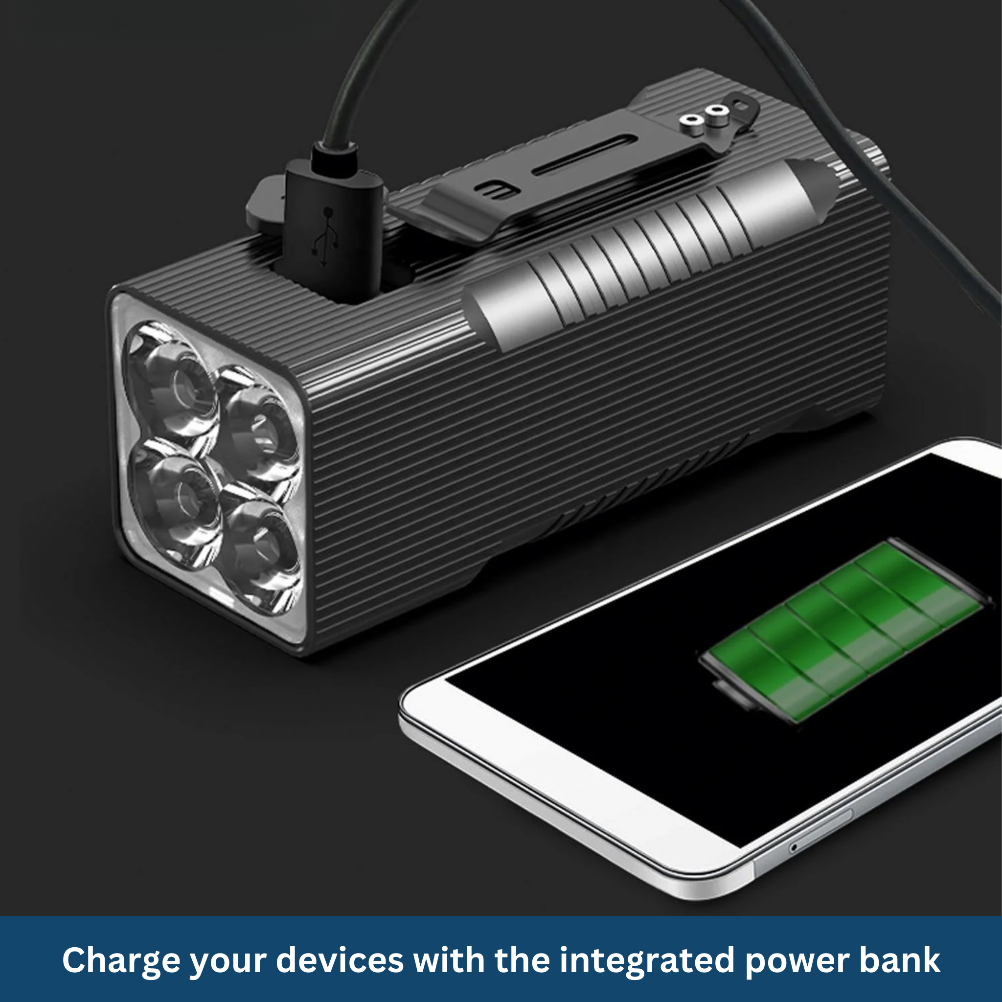 In an emergency, it can be used as a flashlight and also serves as a power bank, so you always have a reliable energy source with you.