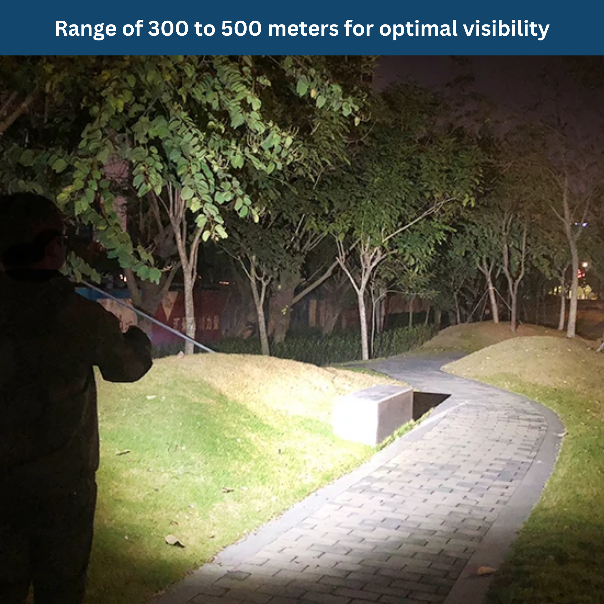 The range of the Ultra Frontlight extends up to 500 meters, allowing you to have a clear view even at longer distances.