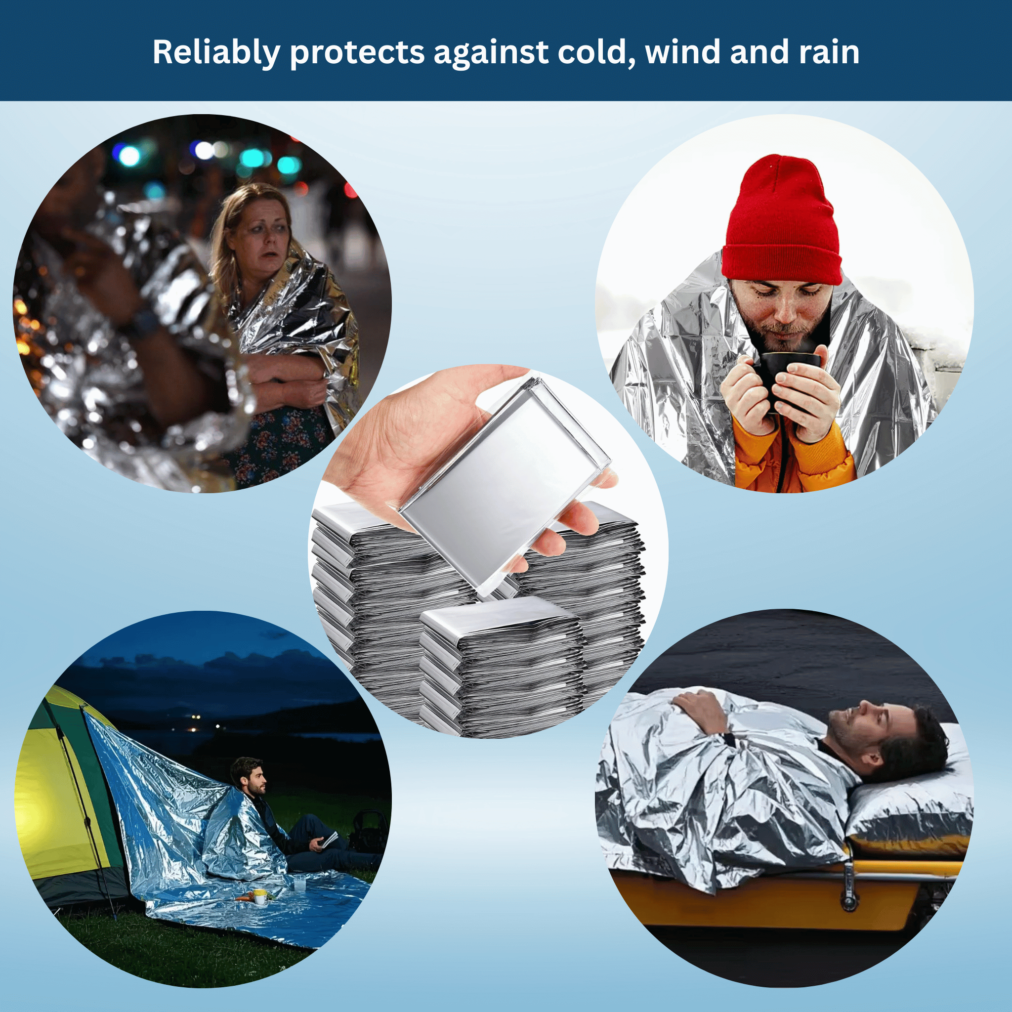 The blanket folds compactly to about the size of a credit card, fitting easily into backpacks, car emergency kits, or survival bags, so it’s always ready when you need it.